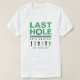 Celebre o último swing do noivo antes do anel com esta camisa de festa de despedida de solteiro temática de golfe em verde, preto e branco. Projetada com a frase "Último Buraco Que Ele Jamais Atingirá", este design divertido e ousado é perfeito para uma saída de golfe ou fim de semana de despedida de solteiro. Ótimo para o noivo e sua turma, esta camisa adiciona um toque divertido à celebração. Personalize com o nome do noivo e detalhes do evento para um souvenir personalizado!