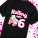 Este design de skate é perfeito para uma festa de patins ou tema de aniversário para uma criança de 6 anos. Se a aniversariante ou o aniversariante adora rodar o skate, eles vão adorar este design de skate! Apresenta a citação de aniversário do estilo "Rolling in 6" com um gráfico de skate de rolo legal com arco-íris e estrelas divertidas e únicas. Design de festas de skate de rolo divertido para um 6 de aniversário!