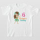 Uma camiseta festa de aniversário com uma criança bonito em uma saia verde e flores de hibisco no cabelo dela. Personalize com o nome, a idade e o texto da sua aniversária. Uma equipe perfeita para uma festa temática de Luau no Havaí. Linda imagem da garota hula em prettygrafik.com