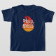 T-shirt com a citação de William Shakespeare, The Tempest "O Inferno está vazio, e todos os diabos estão aqui" contra um fogo laranja.