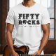 Roll into your fiftieth milestone with this cool Fifty Rocks guitar pick birthday party shirt for 50 year old adults. Great for lifelong rockstars who love music. Personalize it with your event details for a rocking event that is unique to you.