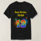 Esta design de camisa vibrante e divertida apresenta um padrão inspirado em fogos de artifício celebratórios coloridos, juntamente com o número "13", tendo um espectro de inspiração multicolorido no arco-íris ou padrão de gradiente. Ele também apresenta um nome personalizado e uma mensagem de evento, como uma saudação de aniversário de "Parabéns". Uma camisa como esta pode ser vestida pelos convidados numa festa de aniversário que se realiza para celebrar o décimo terceiro aniversário de alguém. [~Z0000332]