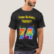 Esta design de camisa vibrante e divertida apresenta um padrão colorido inspirado em fogos de artifício comemorativos que explodem, juntamente com o número "74" com um espectro multicolorido como o arco-íris ou padrão de gradiente. Ele também apresenta um nome personalizado e uma mensagem de evento, como uma saudação de aniversário de "Parabéns". Uma camisa como esta pode ser vestida pelos participantes numa festa de aniversário que se realiza para celebrar o setenta e quatro anos de alguém. [~Z0000332]