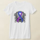 Fita azul e púrpura com asas e padrão de filigrana. A fita azul e púrpura representa Artrite Reumatoide e Acidente Pediátrico. O Mês de Sensibilização por Curso Pediátrico e a Artrite | Mês de Consciência da Artrite Reumatoide.