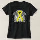 Fita amarela com asas de anjo e padrão de filigrana. A fita amarela é o retorno das forças armadas, aceitação craniofacial, lembrando as vítimas do fogo de Sábado Negro, e a Sociedade Canadiana de Canceres, e a consciência do cancer ósseo / osteosarcoma / sarcoma, endometriose, morte de Corazon Aquino, Doenças Hepáticas - Atresia Biliar, cancer de bexiga, adenosarcoma, intoxicação por monóxido de carbono, Etoxina Sarcoma, Câncer de figado, Doença Hepática, Liposarcoma Myxoide e Spina Bifida. Março é Sensibilização para a Endometriose Mês de maio é Mês de Sensibilização para Tropas/Apoio Militar. Julho é Sarcoma/Bone Cancer Awarness Mês e Bladder Cancer Awarness Mês. Setembro é o Mês de Consciência do Câncer de figado e o Mês de Consciência da Doença Hepática. Outubro é Spina Bifida Mês de Consciência.
