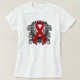 Fita vermelha com asas angulares e padrão de filigrana. A fita vermelha está associada à Sensibilização para a SIDA, à Anemia Diamond Blackfan, à Sensibilização para a Bullosa Epidermólise, à Sensibilização para a Síndrome de Evans, à Sensibilização para a Deficiência do Fator XI, à Sensibilização para o Abuso Inalador, à Sensibilização para a Síndrome de QinT Longa, à Sensibilização para o Abuso Supraventricular dia, Consciência sobre púrpura trombocitopénica Trombótica, Sensibilização para a Tuberculose, Sensibilização para a Doença de Von Willebrand e Consciência Branca de Wolff Parkinson. As observações mensais são a Sensibilização para a Síndrome de Marfan, Sensibilização para as Doenças Cardíacas, Sensibilização para a Insuficiência Cardíaca Congestiva, Sensibilização para as Doenças Cardíacas Congênitas, Sensibilização para os Defeitos Cardíacos Congênicos e Sensibilização para as Doenças Cardiovasculares em fevereiro. Sensibilização para o abuso de substâncias, Sensibilização para a MADD (mães contra a condução de Bebados), Sensibilização para a Influência e Educação para a Resistência ao Abuso de Drogas/Sensibilização para o DARO/Semana de Fita Vermelha em abril. Sensibilização Hemofilia em março. Sensibilização e Sensibilização para a Pressão Arterial Elevada em maio. Sensibilização para a Hipertensão em novembro. Sensibilização para a SIDA, Sensibilização para o VIH, Sensibilização para a Anemia Aplástica e Consciência da Medula Óssea em dezembro.