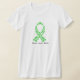 NOTA: Uma fita verde significa a consciência para as seguintes causas: Cancer ad-renal, cancer colagogo, doença bipolar, transplantação da medula, doador da medula, paralisia cerebral, depressão da infância, Gastroparesis, glaucoma, câncer de rim, doença renal, saúde mental, doença mitocondrial (MITO), Neurofibromatosis, dador de órgãos, ferimento da medula espinal, transplantação da célula estaminal, TBI (lesão cerebral traumático), síndrome de Tourette e outras causas verdes da fita não alistadas aqui.