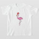 Uma ilustração de um flamingo rosa bonito com chapéu de Papai Noel para o Natal. Este lindo pássaro de pernas longas tem a habilidade de ficar em uma perna que mostra harmonia e equilíbrio. Eles podem ser encontrados em áreas tropicais e subtropicais. Esta design é uma boa ideia para amantes de pássaros, amantes de os animais, amantes de férias tropicais e amantes de Papai Noel.