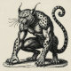 Um leopardo humanóide surreal permanece congelado entre o instinto e o pensamento, misturando tensão humana com alerta animal. Renderizado em linhas dramáticas de gravura, captura um estranho equilíbrio de medo, curiosidade e energia bruta.
