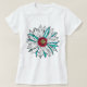 Esta é uma imagem gráfica de uma flor margarida com pétalas brancas e turquesas e um centro amarelo e vermelho.