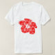 Uma grande flor vermelha de hibisco havaiano para um clássico design hawaiano com um padrão havaiano de flores tropicais, perfeita como lembrança para lembrar sua viagem às ilhas havaianas.