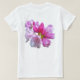 Esta camisa é decorada com uma flor cor-de-rosa e magenta impressionante do rododendro (parte dianteira e a parte traseira)