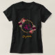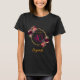 Para uma t-shirt preta. Um quadro geométrico dourado. Decorados com flores roxas escuras e burgueiras, rosas e penas do estilo "boho". Personalize e adicione um nome, 40 anos (qualquer idade) e uma data. Data de nascimento ou data da festa.