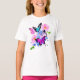 Camiseta Flores rosa e azul e borboleta