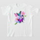 Esta adorável camiseta de flores rosa e roxas e borboleta para meninas é a maneira perfeita de deixar a natureza interior da sua pequena brilhar, perfeita para qualquer menina que ama borboletas e flores.