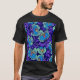 Camiseta com design de matérias têxteis de William Morris, púrpura e flores azuis (1834-1896). Lindas flores decoram um pano de fundo roxo escuro. Um presente maravilhoso para entusiastas da arte vitoriana.