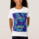 Camiseta com design de matérias têxteis de William Morris, púrpura e flores azuis (1834-1896). Lindas flores decoram um pano de fundo roxo escuro. Um presente maravilhoso para entusiastas da arte vitoriana.
