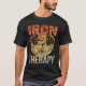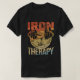 Este design apresenta um texto ousado que lê "O Poderoso Forte Ferro É Minha Terapia" com uma aparência industrial angustiada. Perfeito para os entusiastas do levantamento de pesos.