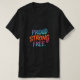 A design da camiseta apresenta a poderosa frase "Orgulho forte livre" em uma combinação vibrante e criativa de cores brilhantes e complementares. O texto é corajoso e revelador, colocando-se contra um fundo minimalista. O design transmite uma mensagem de independência, resiliência e autoestima, inspirando os usuários a abraçar sua individualidade e viver com confiança.