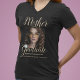 Camisetas modernas da mãe do graduado, apresentando uma foto e texto modelo que diz 'MÃE DO GRADUADO NOME DELES, ESCOLA/FACULDADE E TURMA DE'. Elas são facilmente editadas e podem ser personalizadas para dizer, mãe, pai, pai, tia, tio, avó. Estilos de fonte, tamanho e cor podem ser alterados clicando no link personalizar ainda mais após personalizar.