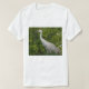 Você é fã da natureza? Você é fã de pássaros? Esta camisa com uma bela grua de areia, posando em frente ao verde.