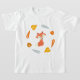 Esta design apresenta uma ilustração vetorial adorável de uma fox vermelha para bebê e uma coroa feita de folhas em lindas cores de queda de azul claro, laranja e amarelo.