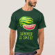 Tee in a whole watermelon accompanied by a juicy red slice dotted with black seeds. Below the fruit, bold green text reads “SUMMER IS SWEET,” evoking the refreshing, sugary delight of watermelon as a quintessential summer treat.