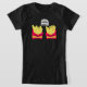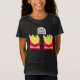 Dois cartoons fritas estão sorrindo, com um deles dizendo, "Fries antes das caras!!". A design colorida e brincalhona adiciona uma mensagem humorística e alegre.