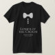 These fun t-shirts are designed as favors or gifts for the father of the groom. The t-shirt is black and features an image of a white bow tie and three buttons. The text reads Father of the Groom, and has a place for the wedding couple's name and wedding date. Great addition to a wedding swag bag.