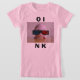 Oink - é o banco cor-de-rosa na camiseta rosa de uma menina para crianças que gostam de animais e porcos em particular. Os óculos 3D azuis e vermelhos e o texto preto adicionam um pouco de diversão.