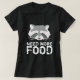 Desenho de uma cara de guaxinim engraçada e adorável e um texto embaixo dela. Camisa preta ou escura. Personalizável. Você pode alterar a imagem e pode alterar ou excluir dois textos de modelo "Precisa de mais" e "Comida". Não se esqueça de mudar outro estilo e cor do roupa. Divirta-se.