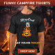 A bold, cartoon-style T-shirt design that delivers dark humor with a playful twist. The scene features a terrified marshmallow skewered on a wooden stick, eyes wide and sweating as it hovers above a menacing fire with an evil grin. The stick runs straight through the marshmallow and pops visibly out of the top, emphasizing the tension of the moment. Below, the fire stares up with sharp teeth and a sinister expression, ready for what comes next.