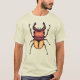 Camisa colorida do besouro com uma ilustração artística do vetor que mostra um besouro-morcego com grandes galhadas com elementos decorativos em cores amarelo e laranja divertidas.