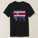 Três jogadores de futebol de Rican da costela na silhueta jogam na frente da bandeira de Rican da costela. Disponível nos homens, nas mulheres, nas crianças e no roupa infantil.