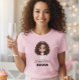A feminine, light pink t-shirt featuring a fun cartoon of a beautiful bride-to-be wearing a tiara and wedding dress. The design is personalized with the text "Future Mrs. Davis" in elegant script and bold font, perfect for an engagement