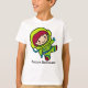 Para o astronauta de amanhã. Menino bonito com cabelo magenta num traje espacial verde. O texto é personalizável.
