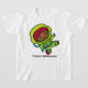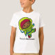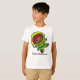 Para o astronauta de amanhã. Menino bonito com cabelo magenta num traje espacial verde. O texto é personalizável.