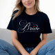 Camiseta preta de noiva fofa e elegante com texto 'Noiva' em branco e coração vermelho pode ser personalizada com o seu nome 'Futuro Sra.'