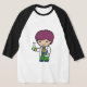 Camiseta Básica, Mangas Raglan 3/4, Branco/Preto, Adulto M