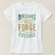 A t-shirt apresenta o texto "Dreams Forge Futures" num vibrante e multidesign. Cada palavra é uma cor diferente, criando um olhar dinâmico e atraente.
