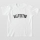 Verifique para fora este t-shirt de Galveston! É você de Galveston, Texas? Você tem um amigo ou um membro da família que amem Galveston, Texas? Em caso afirmativo, este t-shirt da "bandeira" é exatamente o presente que você está procurando! As características de design "Galveston" na rotulação preta arqueada na pia batismal clássica da faculdade.