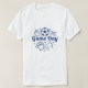 A bold blue sports-themed “Game Day” design with soccer ball, stopwatch, megaphone, bow, and cheering symbols. Perfect for cheer moms, soccer fans, and team spirit days.