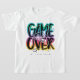 A colorful gaming-inspired typographic design featuring bold gradient lettering that reads “Game Over,” accented with a game controller icon and the phrase “Let’s Play Again!” for a fun, retro-gamer vibe.