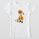 Gardinha Bonita com Camisa-T de Meninas Flores. Um desenho de uma garota com flores em uma lata de água.