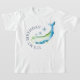 Esta camiseta de honra apresenta uma ilustração de uma baleia em tons de azul. As palavras "É o meu aniversário" são colocadas numa letra clássica. Use os campos modelo para adicionar seu texto personalizado. Uma escolha encantadora para as festas de aniversário de criança. Arte e design de Victoria Grigaliunas