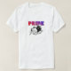 Um gato bonito que olha através de sua camisa de T com a palavra ORGULHO aéreo