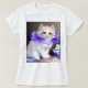 T-Shirt com um lindo gatinho branco! Um gatinho fofo veste um colar de flores roxo. Uma tigela azul de flores brancas e roxas senta à direita. Um presente maravilhoso para amantes de gatos e entusiastas de arte vitorianos!