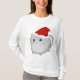 Um gato cinzento do gatinho do gato malhado do chibi bonito do kawaii em um chapéu do papai noel que deseja lhe um Natal meowy! Feito especialmente para amantes do gato de todas as idades
