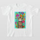 Camisa bonita do estilo da arte popular com um gato bonito. Esta arte é gerada por IA. Flores bonito, roxas e vermelhas, de fundo lacrimogêneo.