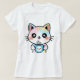 Camiseta Gato de Pastel Kawaii Bonito com Vinheta de Café
